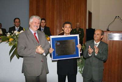 O Poder Legislativo Jalesense realizou nessa segunda-feira, 17, Sessão Solene para entregar três Títulos de Cidadão Jalesense, aos ilustríssimos senhores: Tenente Coronel José Pascoal Nicoletti, Comandante do 16º Batalhão da Polícia Militar do Interior; 1º Tenente Mário Gerotto, Delegado da 20ª Delegacia do Serviço Militar e Charles Wiston de Oliveira, Delegado de Polícia do Município de Jales.