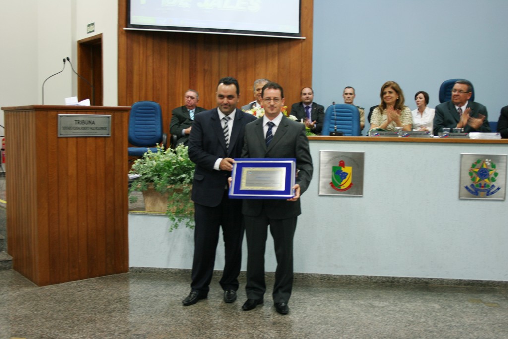 O Título de Cidadão Jalesense é outorgado pelo Poder Legislativo a pessoas que, reconhecidamente, tenham prestado relevantes serviços ao Município. Na quinta-feira receberam o Título os senhores José Devanir Rodrigues – o Garça, Dr. Wanderley Garcia e o empresário Fabrício Fuga.