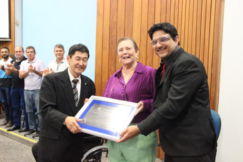 O “Título de Cidadã Jalesense” foi concedido à senhora Neli Antônia Meneghini Nogueira, pela prestação de serviços sociais, comunitários e atividades na área agrícola.
