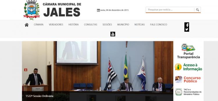 A Câmara Municipal de Jales lançou nesta sexta-feira, 4 de dezembro, seu novo website oficial. A página do Poder Legislativo Jalesense conta agora com maior interatividade, navegação mais simplificada e grande conteúdo referente aos trabalhos realizados pelos senhores vereadores, bem como a transmissão ao vivo, de forma mais otimizada, de todas as sessões realizadas na Casa. O site também é responsivo, podendo ser totalmente visualizado em celulares ou tablets.