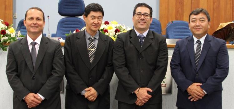 Na ocasião também foi eleita, por unanimidade, a Mesa Diretora que comandará os trabalhos da Casa no biênio 2017-2018. A referida Mesa será presidida pelo vereador Vagner Selis – o Pintinho. Os vereadores Bismark Jun Iti Kuwakino, Adalberto Francisco de Oliveira Filho – o Chico Cartorário e Fábio Kazuto Matsumura ocuparão, respectivamente, os cargos de vice-presidente, 1º e 2º Secretários.