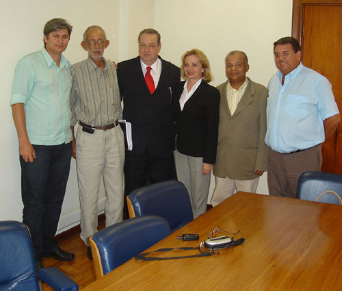 Com um calhamaço de pedidos em mãos, a presidenta da Câmara de Jales, Aracy Murari Cardozo e os vereadores Gilberto Alexandre de Moraes, Jediel Zacarias e Claudir Aranda, juntamente com o provedor da Santa Casa, José Devanir Rodrigues estiveram na Secretaria da Saúde do governo estadual, nessa terça-feira, dia 13, às 15h, em reunião com o assessor técnico, Dr. Albano da França Rocha Sobrinho.