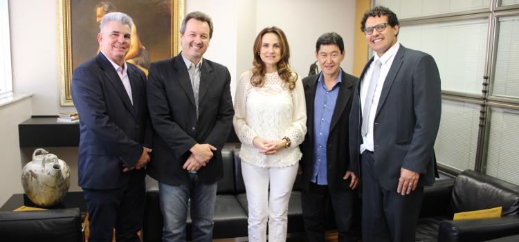 Os vereadores Bismark Kuwakino (PSDB), João Zanetoni (PSB) e o prefeito Flávio Prandi Franco acompanharam a reunião.