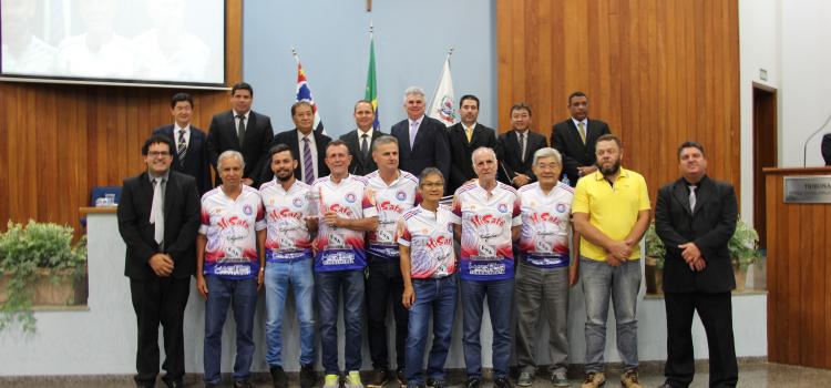 Em Sessão Ordinária (24), o vereador Fábio Kazuto homenageou com moção de aplausos as equipes e treinadores de vôlei minobol pela conquista do título de Campeões Estaduais, nas categorias acima de 50 e 60 anos.