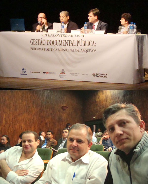 Com o objetivo de aprimorar os fundamentos legais e técnicas para a criação de Arquivos Públicos Municipais e a implantação de políticas municipais de gestão documental, os servidores municipais da Câmara Municipal Marco Antônio Zampieri, Diretor Administrativo, Fábio Rogério Galan, Oficial de Secretaria e José Antônio Martins de Oliveira, Assessor Jurídico, participaram do VIII Encontro Paulista sobre Gestão Documental Pública, no último dia 19 de junho, em São José do Rio Preto.