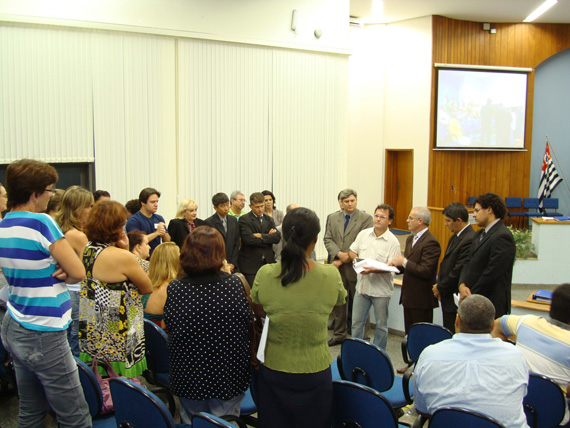 O motivo da audiência, ali mesmo no Plenário, foi a entrega da sugestão do Projeto de Lei para que a Câmara encaminhe ao Executivo, solicitação no sentido de que a administração municipal institua o Plano de Cargos, Carreiras e Salários dos profissionais da área da saúde. O Anteprojeto de Lei foi elaborado por Comissão designada pela Portaria nº 266/2009, da administração.